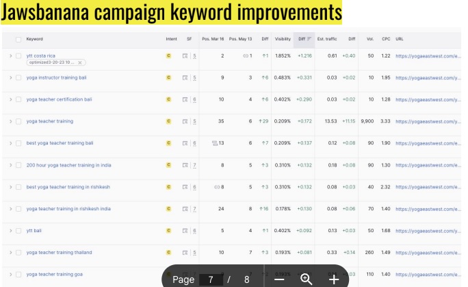 East+West Yoga partnered with me after five years of struggling to sell the business due to inconsistent enrollment and weak online visibility. Over a 6-month engagement valued at $20,000, I executed a full-funnel SEO and acquisition strategy encompassing content strategy, on-page SEO, page speed and URL restructuring, link building, and YouTube optimization, along with high-intent Google Ads alignment. We focused on intent-driven keyword targeting around “yoga teacher training,” “250-hour yoga certification,” and location-based qualifiers—then reinforced keyword clusters across landing pages, YouTube content, and optimized metadata. As technical SEO improvements increased crawl efficiency and performance, traffic rose significantly, and conversions tripled from teacher-training prospects—ultimately unlocking the company’s first strong acquisition opportunity after half a decade on the market.
